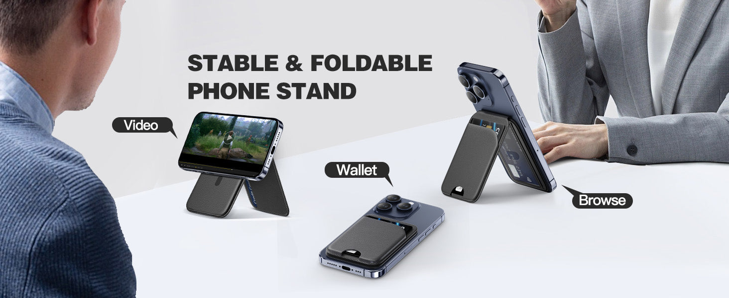 Your phone stand and wallet—combined into one sleek, MagSafe-compatible accessory. Snap it on, keep your essentials close, and go hands-free anywhere.
